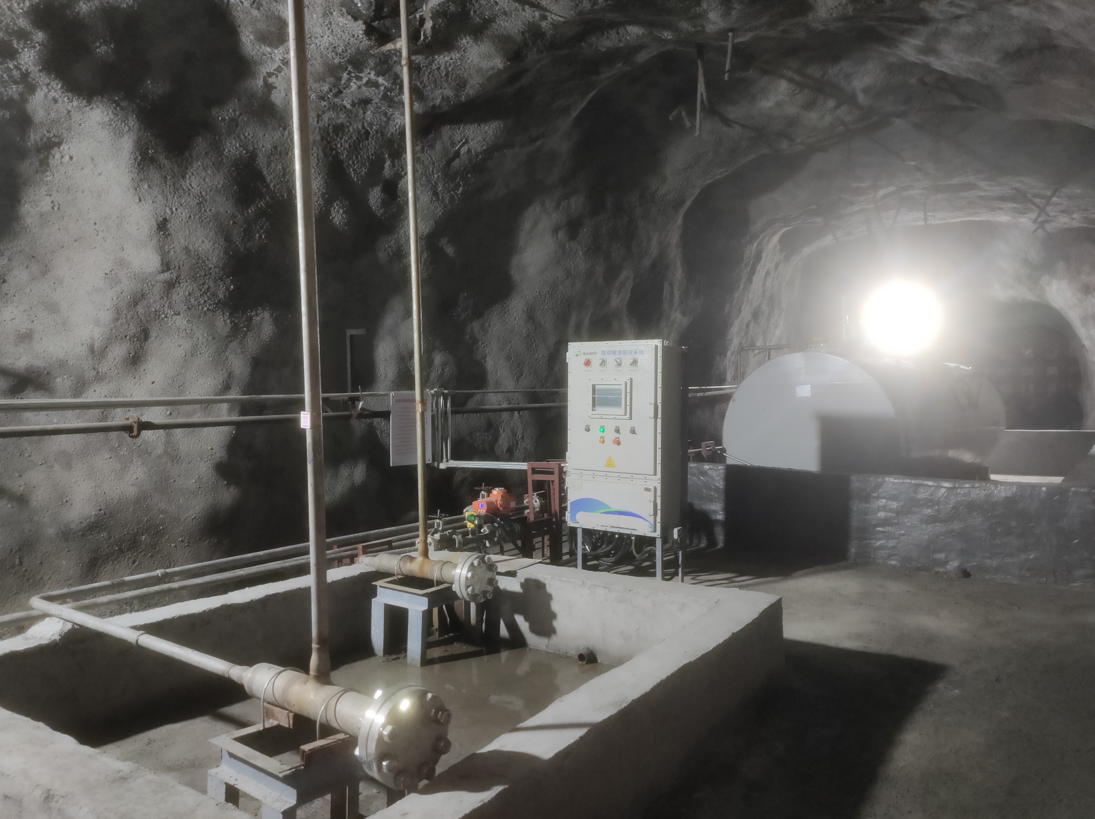 凡口鉛鋅礦井下680米智能供油系統(tǒng) 目前正有序施工中, 預(yù)計(jì)9月底完工并投入使用。該項(xiàng)目為全國(guó)首創(chuàng), 由韶關(guān)企業(yè)進(jìn)行技術(shù)攻堅(jiān) 并申請(qǐng)多項(xiàng)國(guó)家專利, 擬申報(bào)吉尼斯世界紀(jì)錄 “全球最深的智能供油系統(tǒng)”。 凡口鉛鋅礦井下智能供油系統(tǒng) 需在地面設(shè)置橇裝加油裝置, 并分別在地下 330米、480米和680米處 建設(shè)智能化供油系統(tǒng), 通過(guò)鉆孔鋪設(shè)輸油管線, 將油品從地面輸送到井下。 地下330米智能加油點(diǎn), 目前已進(jìn)入收尾階段, 現(xiàn)場(chǎng)有兩根 從地面裝置接下來(lái)的輸油管, 用于工程車加油, 另一邊也有兩根輸油管輸送到 地下480米和680米的智能加油點(diǎn)。 別看油管很細(xì),鉆孔不大, 但施工難度并不小, 全長(zhǎng)3千多米的輸油管, 垂直打孔偏差不能超過(guò)1米。 作為亞洲最大的 單體鉛鋅銀礦生產(chǎn)基地, 凡口鉛鋅礦 有井下工程車輛和設(shè)備100多臺(tái), 井下用油量大。 井下智能化供油系統(tǒng)啟用后, 不僅解決井下用油安全、環(huán)保風(fēng)險(xiǎn), 同時(shí)降低生產(chǎn)用油成本, 推進(jìn)凡口鉛鋅礦建設(shè)智能化礦山, 實(shí)現(xiàn)“無(wú)人開(kāi)采”。 如果鉆孔偏差太大,就找不到鉆下來(lái)的孔,影響輸油管道的布設(shè),增大成本。3千多米有5千多個(gè)焊接點(diǎn),所有的焊接口都要達(dá)到高壓管道的焊接要求,這個(gè)項(xiàng)目是全國(guó)首創(chuàng),在全國(guó)所有礦山企業(yè)中,我們是首次使用通過(guò)輸油管道往井下輸油,并且實(shí)現(xiàn)智能控制的方案。 這個(gè)月底把地下330米加油點(diǎn)完工,開(kāi)始加油,9月底把底下480米和680米開(kāi)通使用。希望通過(guò)這個(gè)項(xiàng)目打造創(chuàng)新科技的韶關(guān)樣板,把先進(jìn)的經(jīng)驗(yàn)和技術(shù)推廣到全省、全國(guó)乃至全球。